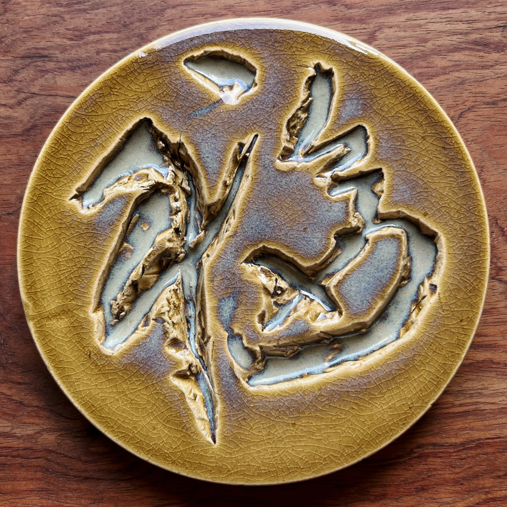 福(陶芸) 粘土に深く文字を刻んで 釉薬が溜まるように制作しました。 2024年。