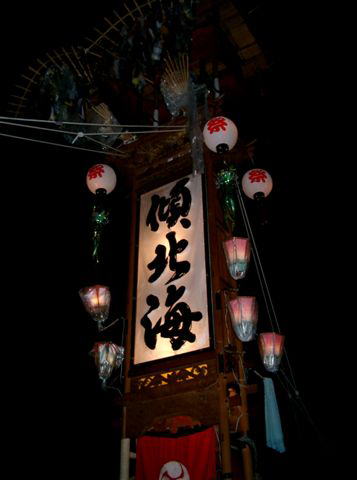 能登のキリコ祭りの文字です。 夜には明かりが灯ります。2003年。