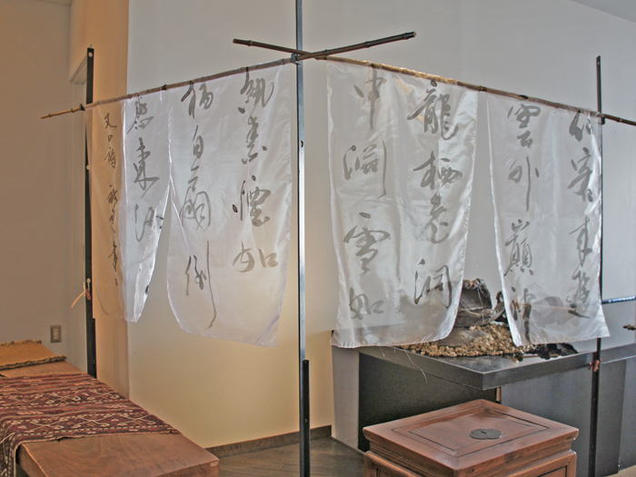 透ける素材の布に、漢詩を書きました。