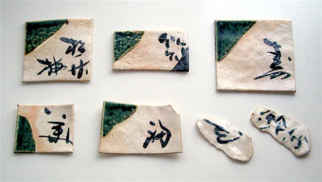 陶板を作り、鉄釉で字を書きました。