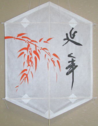 段の形のちょうちんに漢詩を書きました。