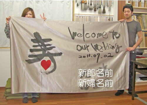 幅が4mの巨大な布に書いた、結婚式の