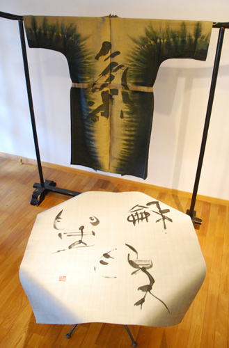 手書きTシャツと書作品を紹介しました。