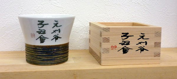 湯のみは陶器、マスは木製です。
