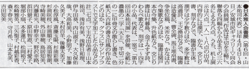中日新聞記事 安城ホームニュース記事 書道美術新聞記事