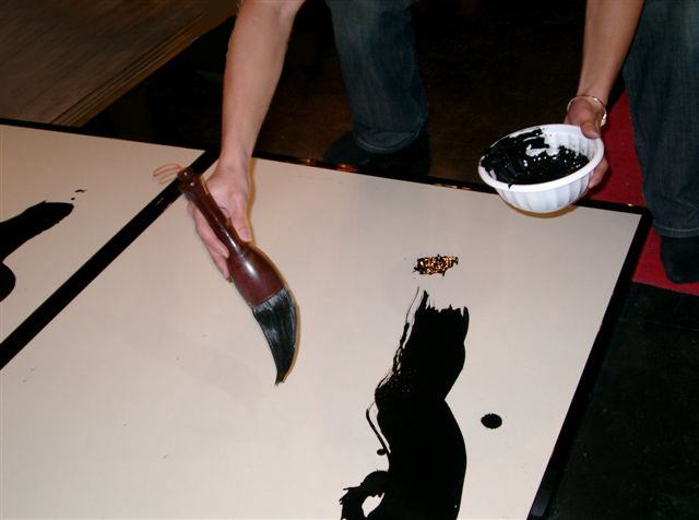 2004年 店舗の開店記念のイベント。 シャンパンやワインを飲んで歓談しながら 書いた屏風です。