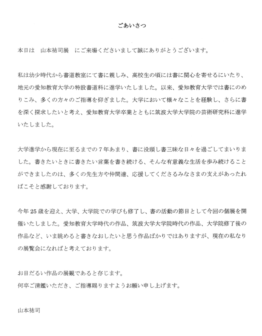 2006年個展 『山本祐司展 -大学・大学院・現在の書-』 2006年10月12日~15日 安城市民ギャラリー